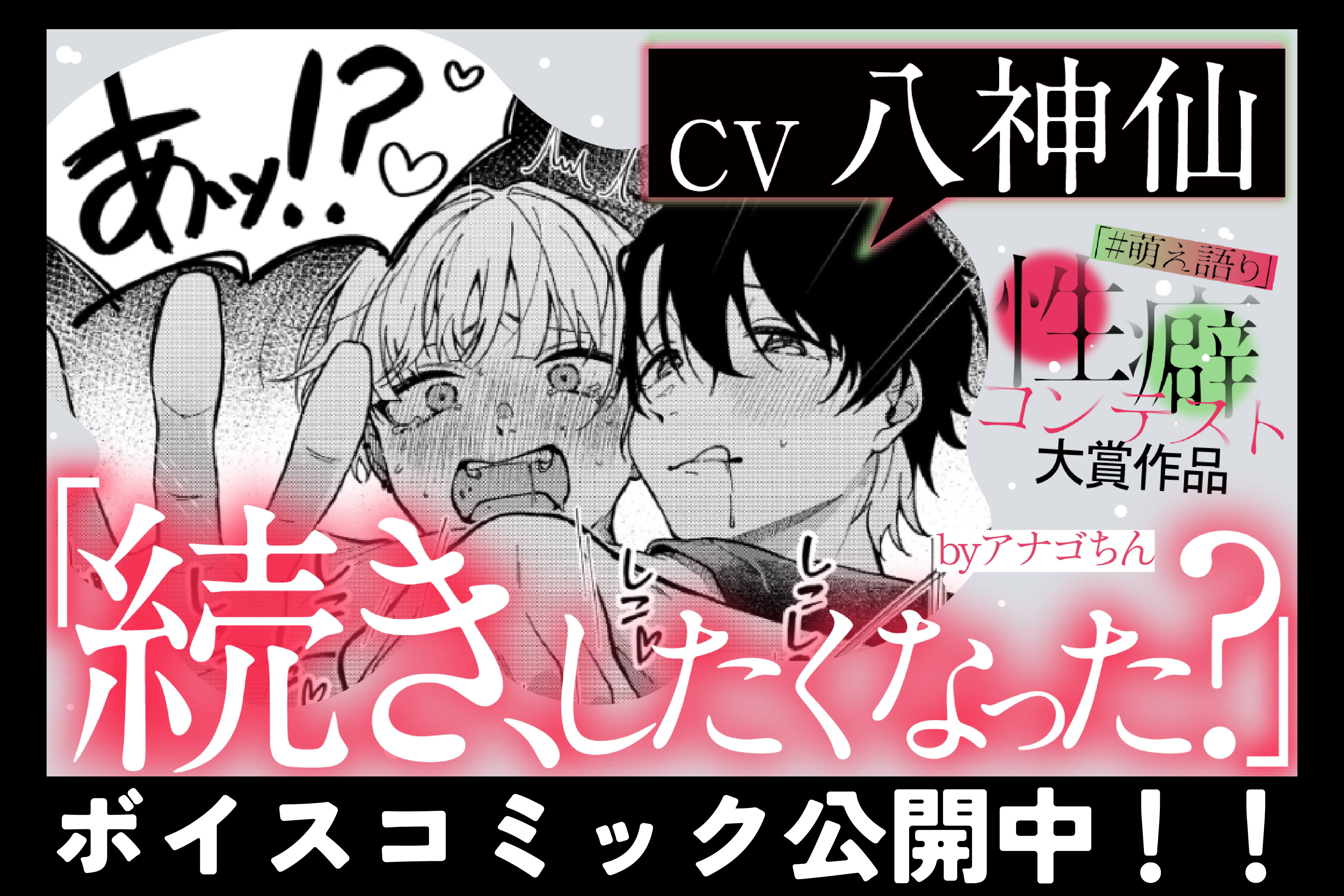 「『#萌え語り』性癖コンテスト」(募集期間:2025/6/1~8/3)大賞受賞作品である『続き、したくなった?【BL】』(アナゴちん)の登場キャラクター・春香に、大人気声優の八神仙さんが声を吹き込みました。
